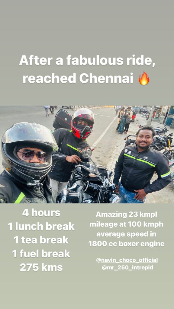 next day morning, after finishing break, team one started from CS Grand by 11:00 AM. Climate was extremely hit but we had mo other option. We decided not to take any random breaks. Our first stop is at Ambur Star biriyani for Lunch. We reached Ambur in 1 hour and started again towards Chennai. Our next stop is Ranipet Toll. We managed to reach the toll by 2:00 PM. Had a short break for juice and hydration. Temperature is around 39 degrees. I poured water over my riding jacket to keep me cool and again started by 2:30 PM. By 3:45 PM, we reached Poonamalle. Heat was terrible at that time, I couldn’t ride further. Had 1 litre water and a juice again and felt better. Final leg is just 30 mins away and i started by 4:00 PM and reached my house by 4:30 PM.